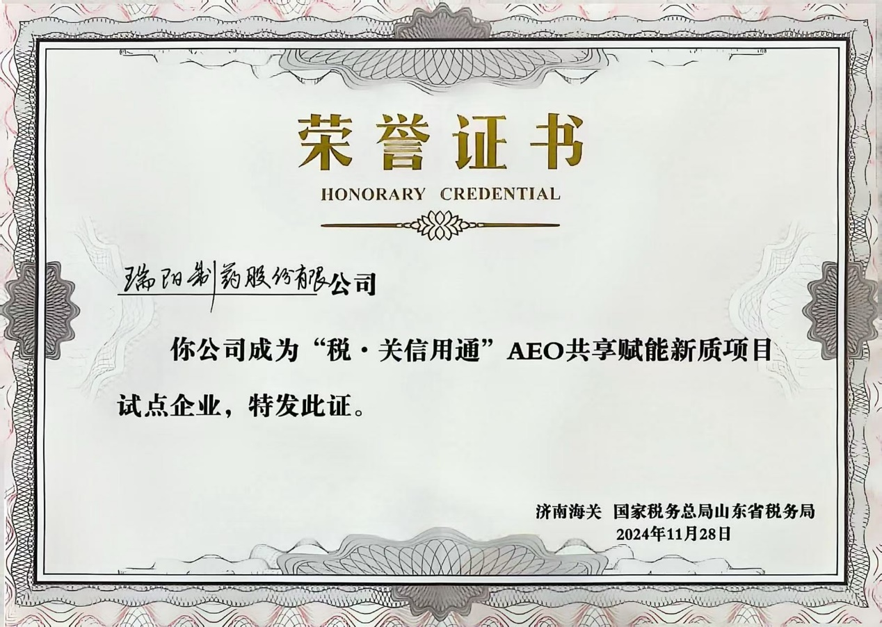 ? 在簽約儀式環(huán)節(jié),濟南海關與山東省稅務局正式簽署了“稅·關信用通”合作書。參會領導為包括瑞陽在內(nèi)的7家AEO高級認證企業(yè)(AEO企業(yè),是由世界海關組織倡導的國際性制度,旨在提升供應鏈安全與貿(mào)易便利化水平)和納稅信用A級企業(yè)頒發(fā)了“稅·關信用通”首批高資信企業(yè)榮譽證書。