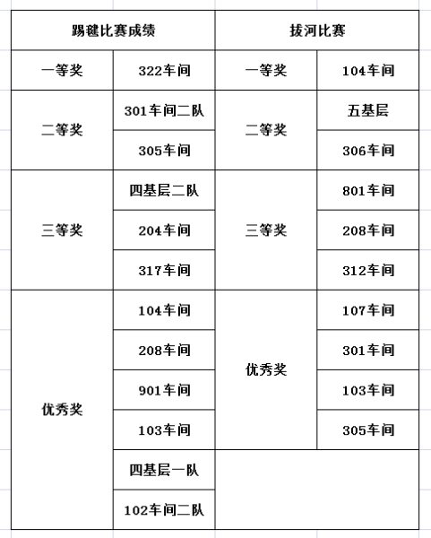 踢毽比賽為限時(shí)賽,采取2分鐘計(jì)時(shí),每隊(duì)5人,同時(shí)在各自1.5米的范圍內(nèi)踢毽, 5人的總體成績(jī)?yōu)閳F(tuán)隊(duì)比賽成績(jī)。比賽中,毽子在參賽者腳上翻飛起落,單腳踢,左右腳對(duì)踢,內(nèi)踢外翻,花樣不斷,不時(shí)贏得現(xiàn)場(chǎng)陣陣喝彩,整場(chǎng)比賽場(chǎng)面緊張激烈。經(jīng)過(guò)比拼,最終322車(chē)間代表隊(duì)獲得踢毽比賽一等獎(jiǎng)。