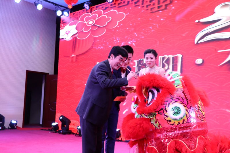 輾轉騰挪雄獅舞財運,翻飛跳躍新春送祥瑞。在苗董為雄獅點睛之后,一頭充滿活力的紅色雄獅在舞臺上騰挪跳躍,寓意著瑞陽一枝獨秀,配合著大屏幕不斷轉換的場景,粉針事業(yè)部張希鵬、尹玉亮為大家奉上了華麗壯觀、惟妙惟肖的演出《雄獅助興》